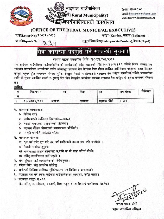 स्थानिय स्वास्थ्य सेवा सातौमा तह वृद्धि गरिएको राजपत्रमा प्रकाशित सूचना ।