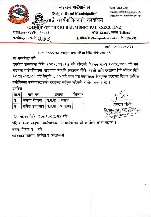 प्राविधिक सहायक पदपू्र्ति सूचना