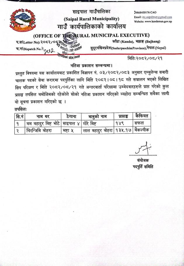 » एम्बुलेन्स चालक नतिजा प्रकाशन सम्बन्धमा ।