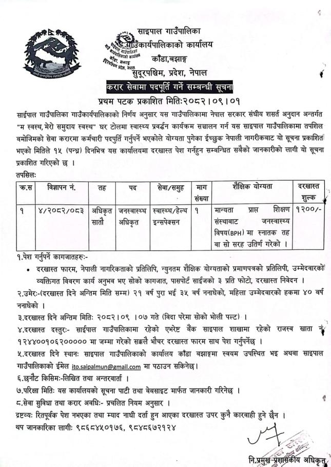 » जनस्वास्थ्य अधिकृतको दरखास्त पेश गर्ने सम्बन्धी सूचना ।